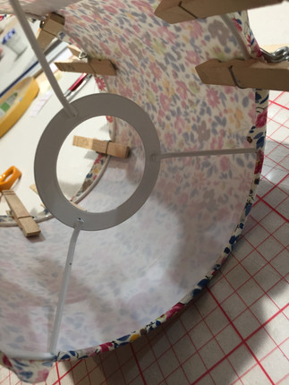 Le polyphane ainsi habillé avec le tissu doit être remonté sur les cercles avec des pinces à linge en bois.